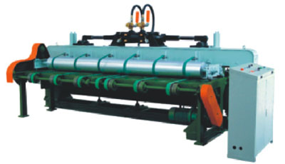 剪刀高速落于轉動的聚胺脂砧輥上,實現不間斷送板,以提高工作效率,單板輸送速度達到55m/min;